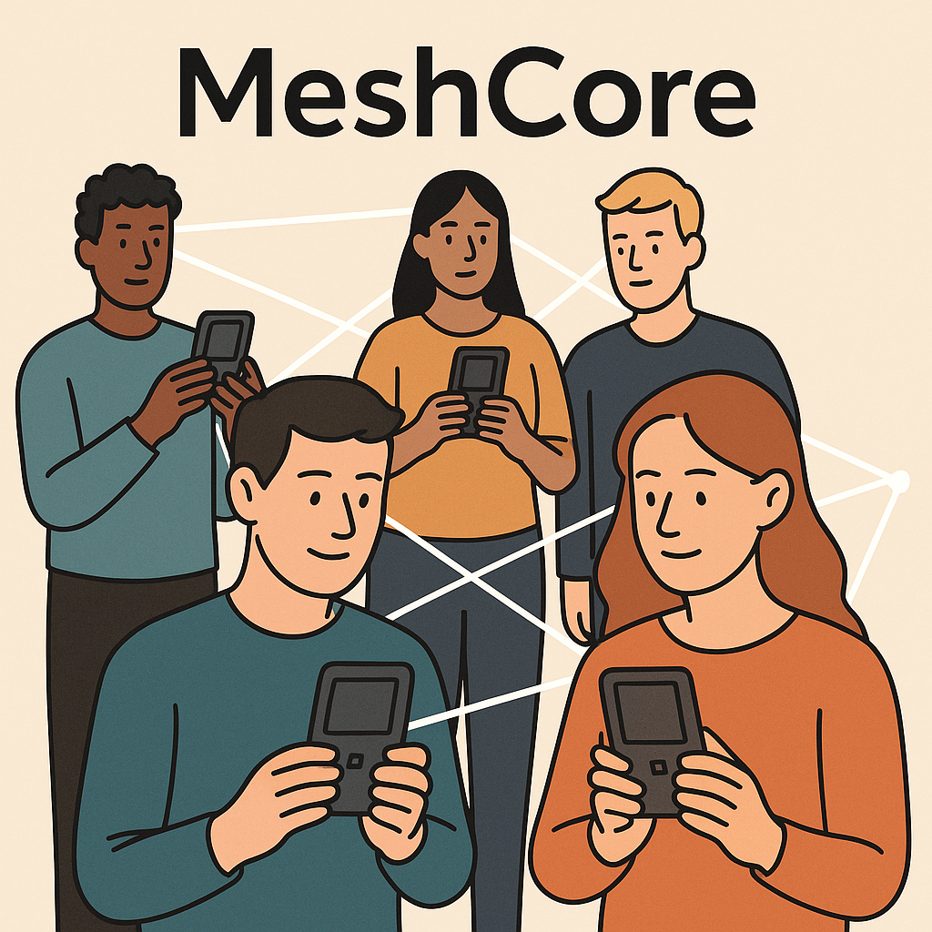 MeshCore není jen síť – je to otevřená komunita. Klienti, repeatery a místnosti propojené tak, aby se mohl zapojit kdokoliv, kdykoliv.